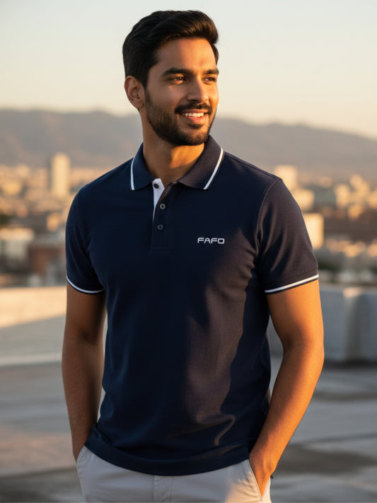 Premium Cotton Polo T-Shirt-Navy Blue