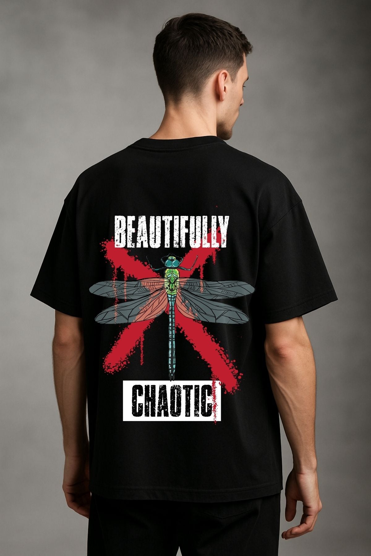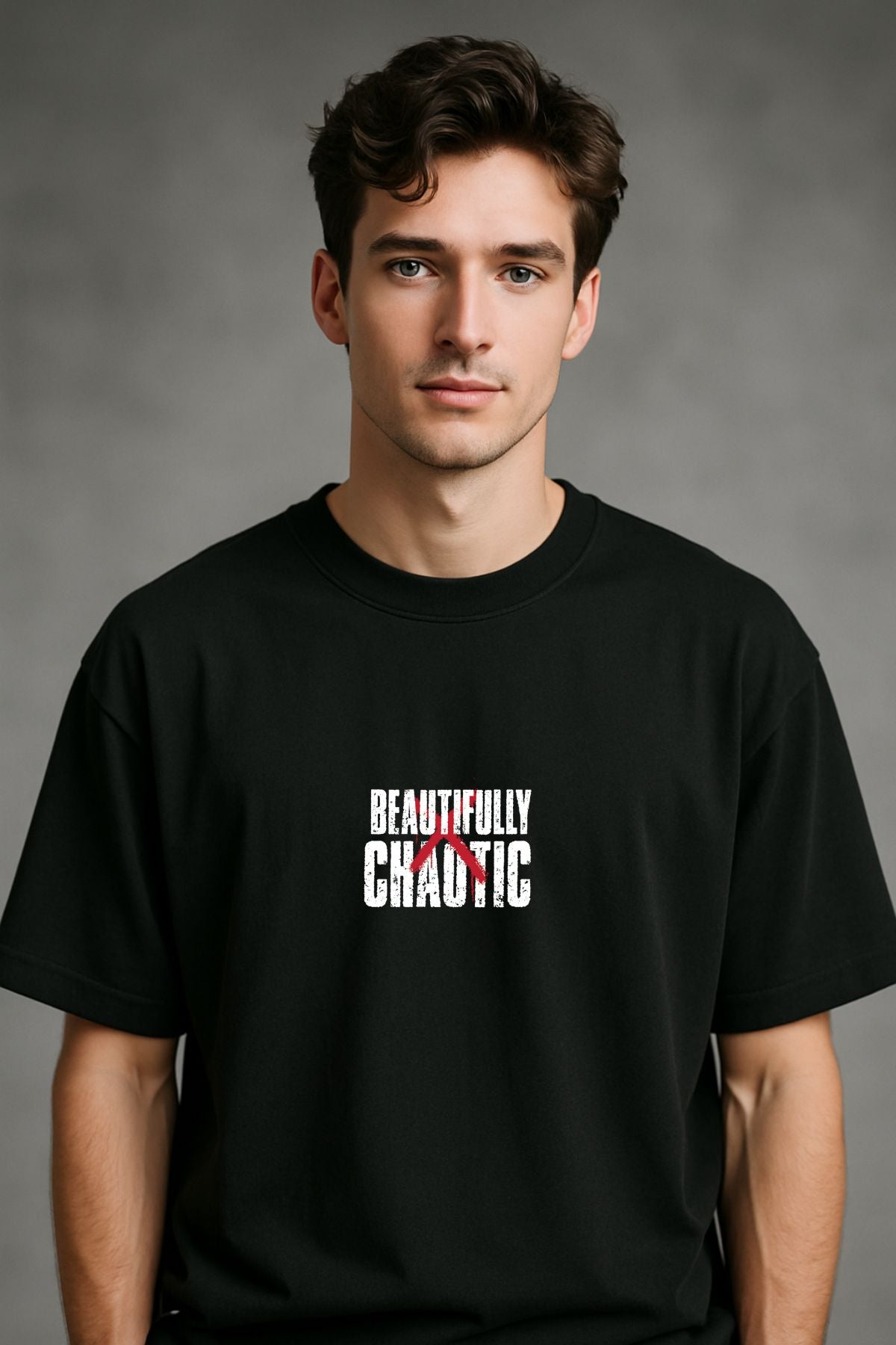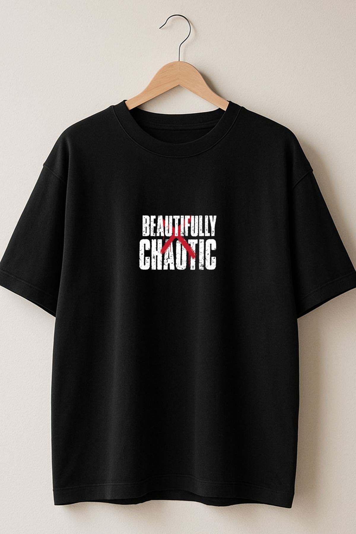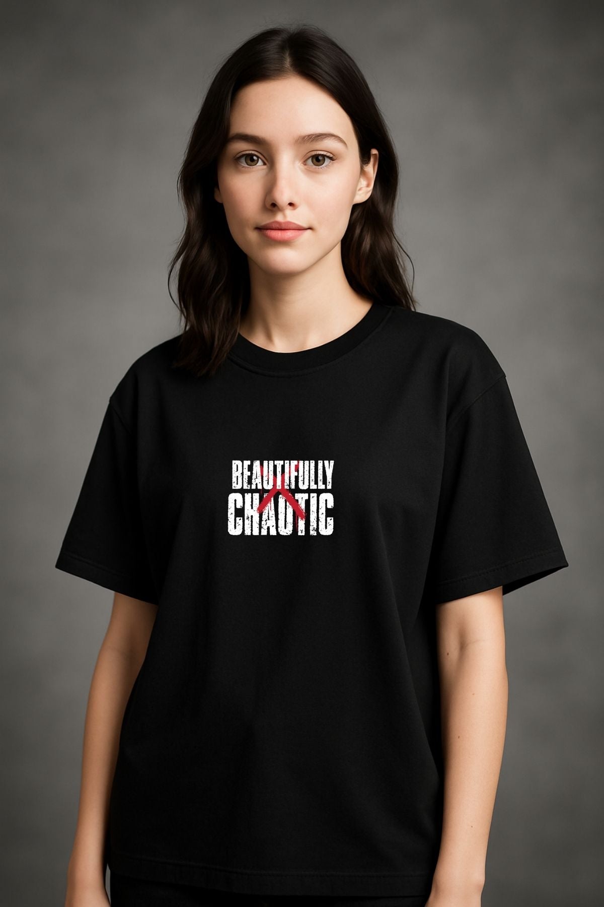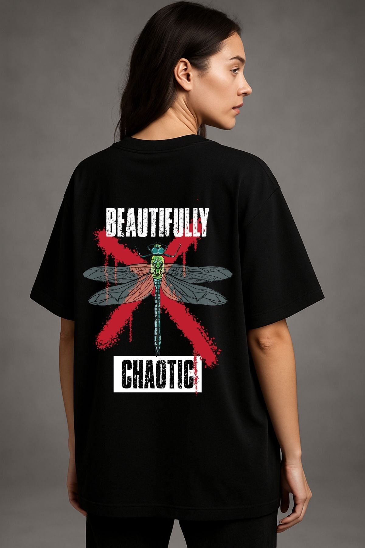 Beautifully Chaotic back front Printed Oversize T-Shirt