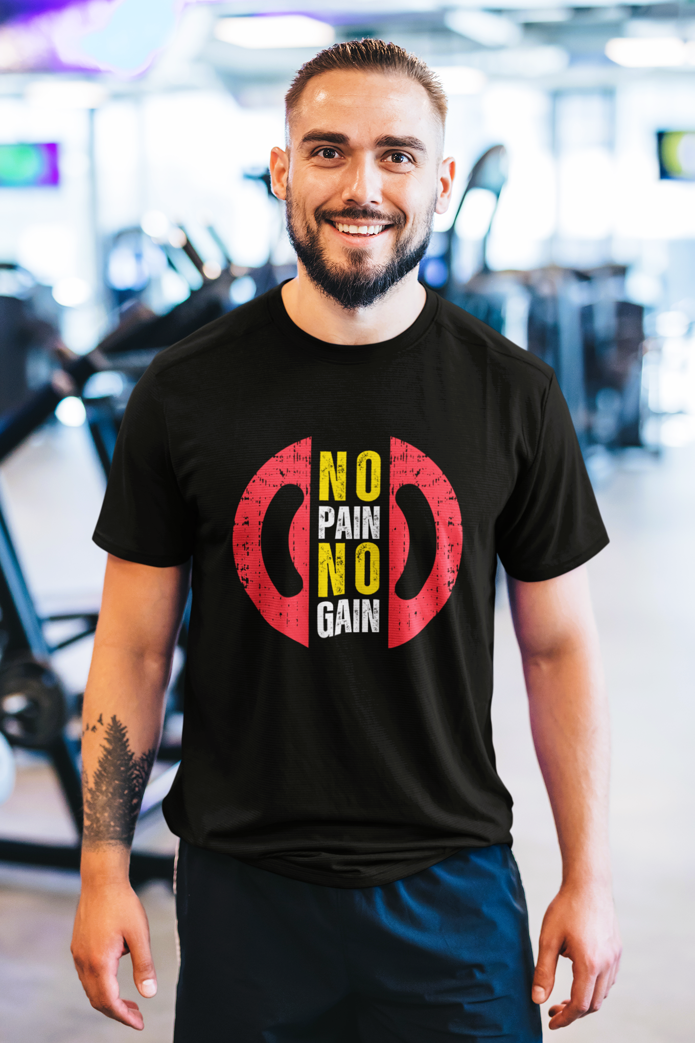 No Pain No Gain Dumbbell Plate Unisex Printed T-Shirt